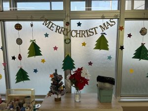 廊下や教室の掲示も、すっかりクリスマスムードに包まれています。