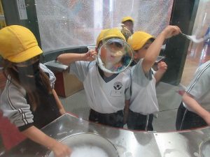 科学館内の自由見学も行いました。シャボン玉や体を使ったゲームなど,「科学の不思議」が詰まった空間で,子どもたちが夢中になって活動していました。