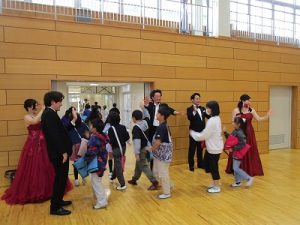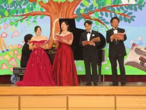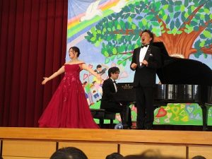 会の中では児童も一緒に校歌を歌ったり,「オー・ソーレ・ミーヨ」のオペラ歌唱に挑戦しました。