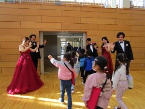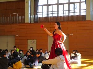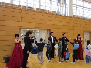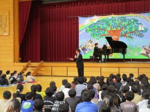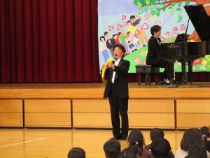 児童の近くで歌唱を披露してくださる場面や歌いながらのパフォーマンスもあり,児童も楽しめたことと思います。