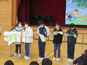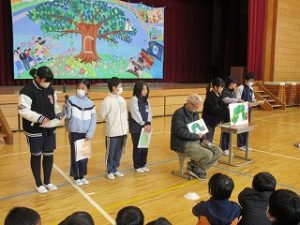ALTがまず英語で読んだところを,図書委員が日本語で読み聞かせをしました。