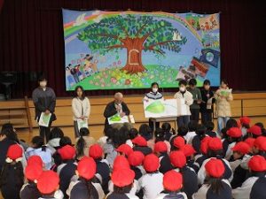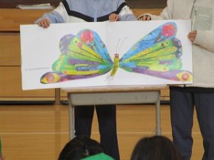 図書委員会とALTによる「はらぺこあおむし(The Very Hungry Caterpillar)」の絵本の読み聞かせがありました。