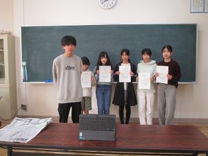 児童会役員選挙の当選者には選挙管理委員長から当選証書が授与されました。JA共済全国交通安全ポスターコンクール,図工美術作品展の入賞者は名前が呼ばれ,代表の児童が教頭先生から賞状を受け取りました。