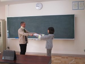 担当の先生による「ちょっといい話」と賞状伝達を行いました。
