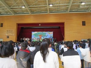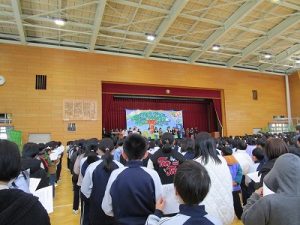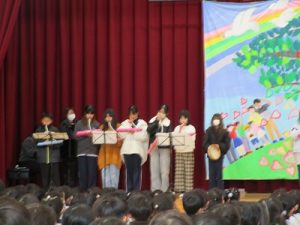 「365日の紙飛行機」はみんなで元気に歌いました。みどりで全校合唱するのは今年度最後でした。素敵な演奏で歌うことができました。