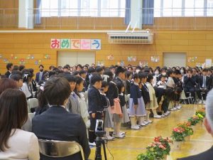 担任の先生に名前を呼ばれ,大きく返事をしていました。