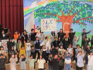 校長先生の話をはじめ,6年生の歓迎のパフォーマンスなどがありました。
