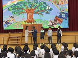 学級役員任命式では,学級役員の名前を呼ばれ,元気に「はい。」と返事をしてその場に立ちました。6年生の児童が校長先生から代表で任命書を受け取りました。