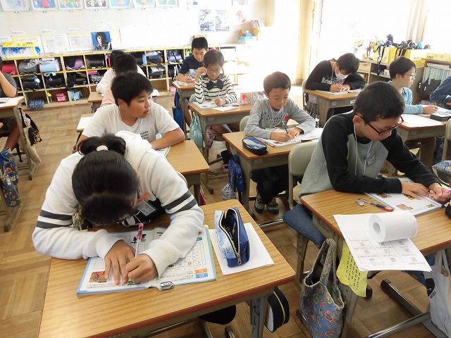 4年、国語(書写)、条幅 この一年間の総まとめとして いつもの半紙ではなく 2枚を縦にくっつけた 条幅(長い紙)に挑戦しました *ただし、実際の条幅よりは小さいです こんな大きな紙に書くのは 初めてなのですが 皆、お手本 […]