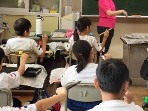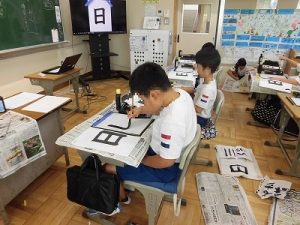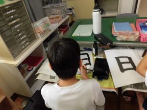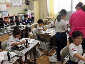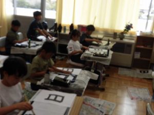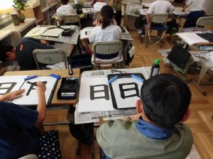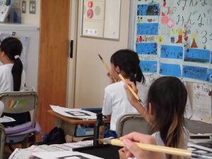 毛筆の「おれ」 2025年09月24日 *本日2つ目のブログです 3年、国語、毛筆 「日」という字は横画から縦画へ曲がる「おれ」があります。 空書きで書き順を振り返りながら、 「日」の練習に入りました。 動画でお手本の描き方をしっかり確認しました。 早速、練習です。 切り替えが早い。 立派な字を書いていますね。 短い時間でしたが、集中して書きました。 学校からのお知らせ