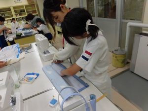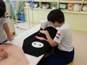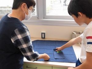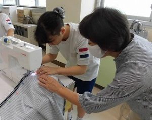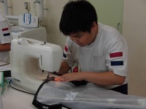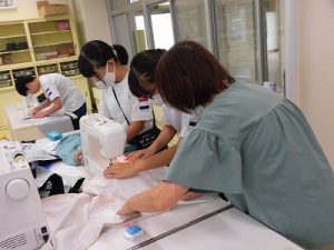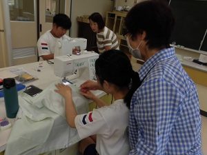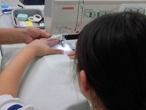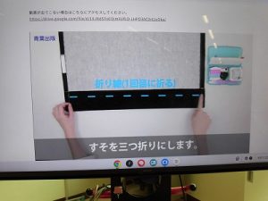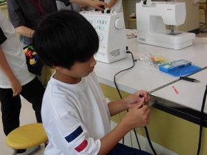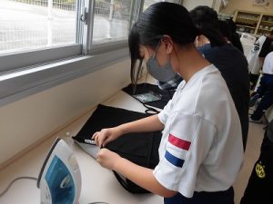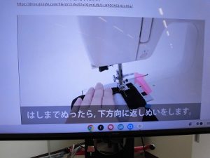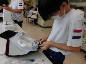 エプロン作り その3 2025年09月26日 *本日2つ目のブログです。 6年、家庭科、エプロン作り 今回が最後、仕上げです。 今回は学校応援団学習支援部、体験活動支援部、 保護者の有志に御協力いただきました。 ひもを通すところを三つ折りにして縫います。 ミシンでは返し縫いをしてみました。 糸がほつれないようにします。 慣れてくると自分一人でもできるようになりました。 アイロンも使いました。 ひもを通しますよ。 できました! 上手にできましたね。 実際に使ってみてください。 学校からのお知らせ