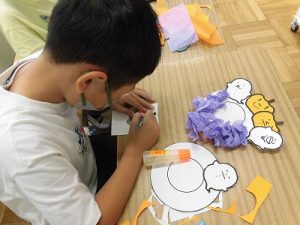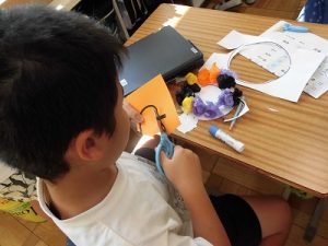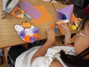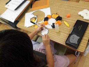 何を作っているのかと聞くと、ハロウィンかざりとのこと。