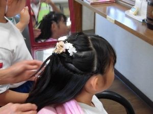 ここは美容室です。髪をカットしたり着付けをしたりしています。