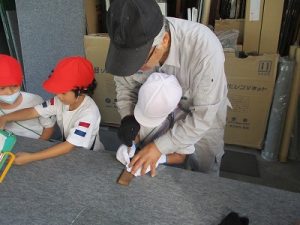 ダイヤモンドカッターを使って実際にガラス切りの体験、