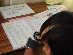 少しだけ視界を遮るめがねをかけ、字を読みます。
