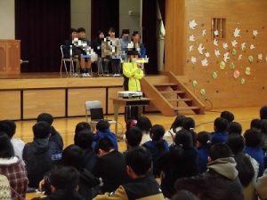 来年度の児童会役員を決めるための立会演説会が