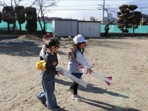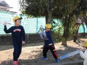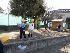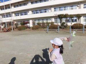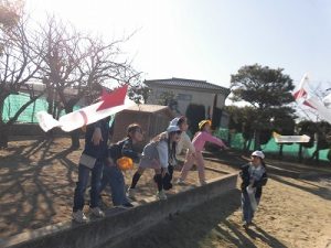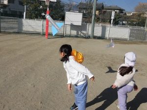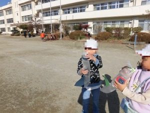 何やら楽しそうな声が…1年生が校庭にいました。