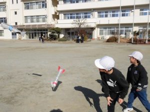 1年、図工、空気ロケット