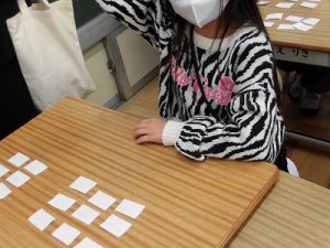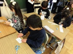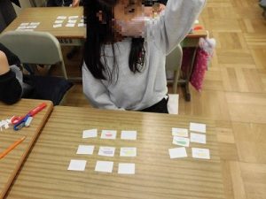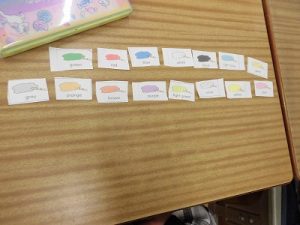 2年授業参観 その1 2026年02月05日 2年、外国語活動 1組は色(color)の学習から始めました。 これ、全部英語で答えられました。すごい! 自分用のカードを切り離します。 全部切り離せたね。 さあ、色ビンゴだよ。 どう、あるかな? あったね。 ビンゴかな? やったー。全部ビンゴ! 学校からのお知らせ