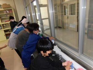 説明を聞いた後、まずは手洗い