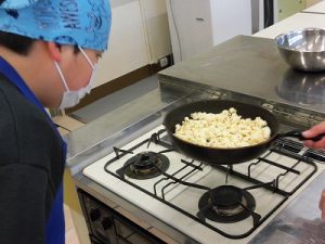 ふたば、みどり学級合同でポップコーン作りをしました