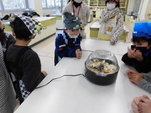 それ以外の児童はポップコーン製造器で調理を進めます