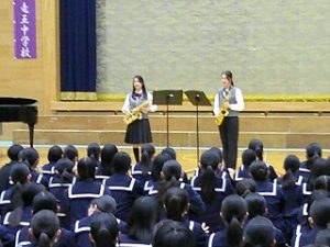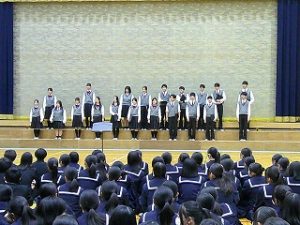 11/19の合唱発表会に向けて合唱熱が高まる中、本年は甲斐清和高等学校音楽科の皆さんに来校いただき、合唱を披露していただきました。