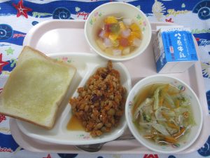レモンシュガートースト・牛乳・チリコンカン・ジュリアンヌスープ・ゼリーポンチ