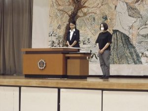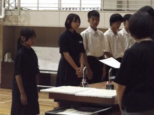 役員になった生徒は、大きな声で返事をし、やる気が伝わってくるものでした。後期の活躍に期待しています。