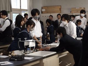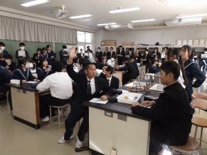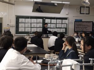 11月14日(金)に研究授業が行われました。今年度本校では、中巨摩初任者の先生方が集まり4回の授業研究を行いました。今回がその最後となりました。初任者の先生方が、竜王北中学校の生徒が良くみんなで学んでいると感心していました。授業では、目に見えない大気圧をイメージ図の大気圧くんなどを使って表していました。色々な発想があり、見ている先生たちもとても勉強になりました。みんなで学び合いができた1時間でした。