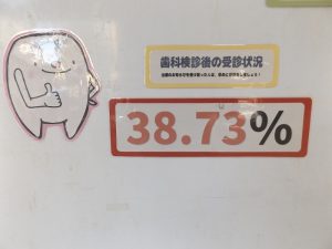 保健室前には、11月8日の「いい歯の日」にちなんで、歯についての掲示物が掲示されています。全校の生徒の虫歯治療パーセントは、何と38.73%。今年中に治療して下さいね。