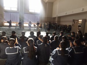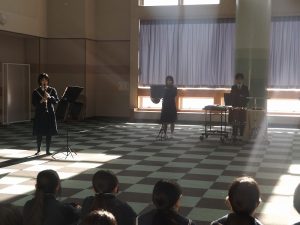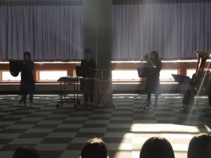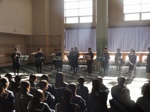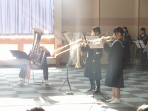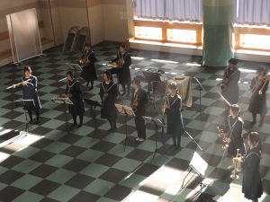 12月15日(月)の昼休みには、練習の成果を全校生徒に披露しました。日々の練習の成果を楽器の音にのせ、素敵な音色が校舎中に響き渡りました。ぜひ、本番も素敵な演奏ができるよう残りの練習を頑張って下さい。