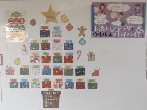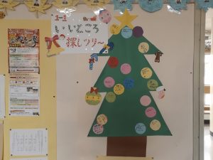クリスマス掲示や保健室前にも大きなクリスマスの木ができました。
