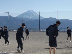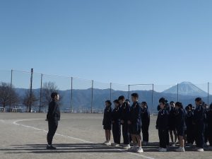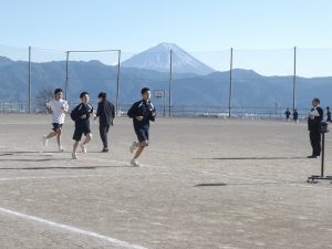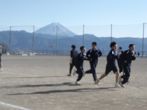 2学期もあと一週間です。色々な行事があった2学期をそれぞれの学年やクラスで振り返っています。成長したところ、さらに成長したいところなど、2学期を振り返って次につなげています。体育での目標を決めて、富士山が見守る中、長距離走を頑張っています。