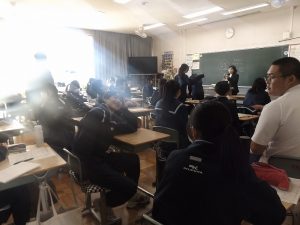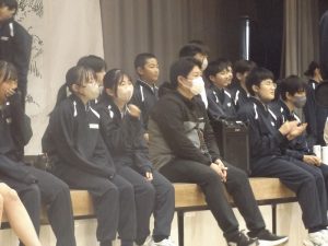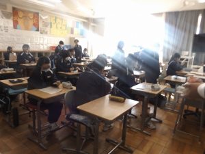 学年レクではドッチボールを行いました。体育館全体を使って激しいボールの投げ合いが行われました。学年集会では、各学級から2学期の成果などが話され、また良き先輩となるためにはどうしたらよいかグループ討議しました。