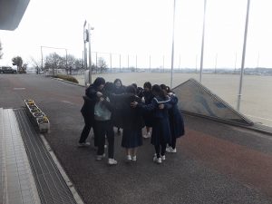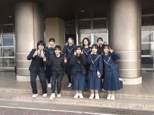 演奏中の写真は撮れませんでしたが、学校では円陣を組んで、素敵な笑顔で出発。このチームワークと笑顔が力となったのでしょう。