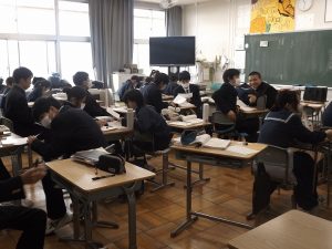 13日には、3年生が入試前、最後の到達度テストが行われました。入試さながらの真剣モードで取り組んでいました。2年生の授業では、グループ学習で学び合っていました。1年生は冬休みの振り返りテストを行い、冬休み勉強した成果を確認しました。