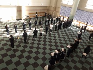 竜王北中では、卒業式に向けて1・2年生が合唱練習。そして、3年生は、いよいよ受検シーズン。勉強に面接練習に頑張っています。
