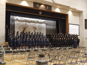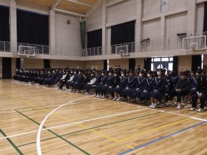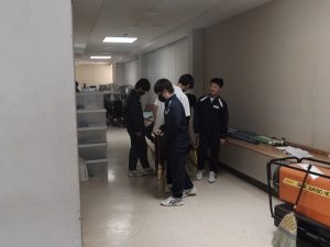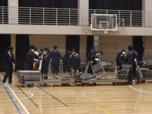1・2年生は、3年生のために会場準備や校舎内外の清掃を行いました。会場をとても素晴らしいものになりました。きっと、明日は全校生徒で素晴らしい卒業式を創り上げることができるでしょう。