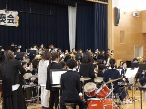 3月7日は、バドミントンの会長杯が行われ、春の大会に向けて冬の練習の成果を発揮しました。他の部活動も同じように春に向けて頑張っています。吹奏楽部は、竜王北小の吹奏楽の卒業記念演奏会に参加し、来年度入学生と一緒に演奏してきました。