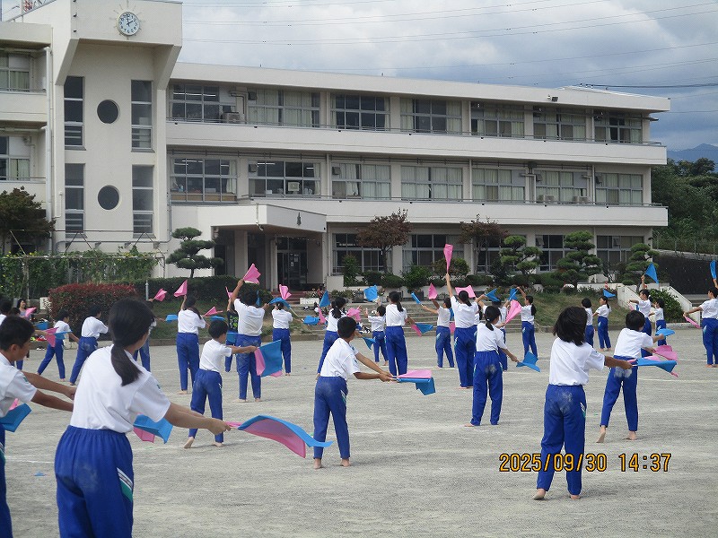 5年生 運動会まであと少し! 2025年09月30日 いよいよ運動会が近づいてきました。 高学年として初めての組立表現。フラッグを使った演技と組立演技を披露します。 仲間と協力しながら、一生懸命練習に取り組んでいます。 組立表現のテーマである「飛翔~仲間と共に輝く未来へ~」を実現できるよう残りの日々も頑張っていきましょう。 学校からのお知らせ