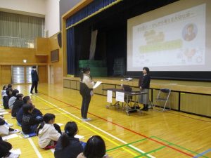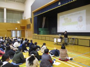 6年生 「がん教育」 2025年11月21日 11月12日に、「サンスマイルえがお」の清水さんにおこしいただき、がんについて学ぶ授業をしていただきました。 ご自身の体験をもとにしたお話に子ども達は真剣に耳を傾け、どんなことを知っておくべきなのか、どんなことができるのかを、しっかり考えていました。 学校からのお知らせ