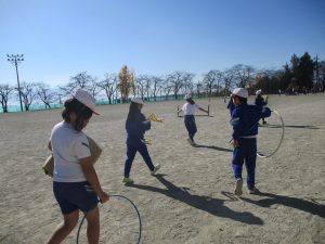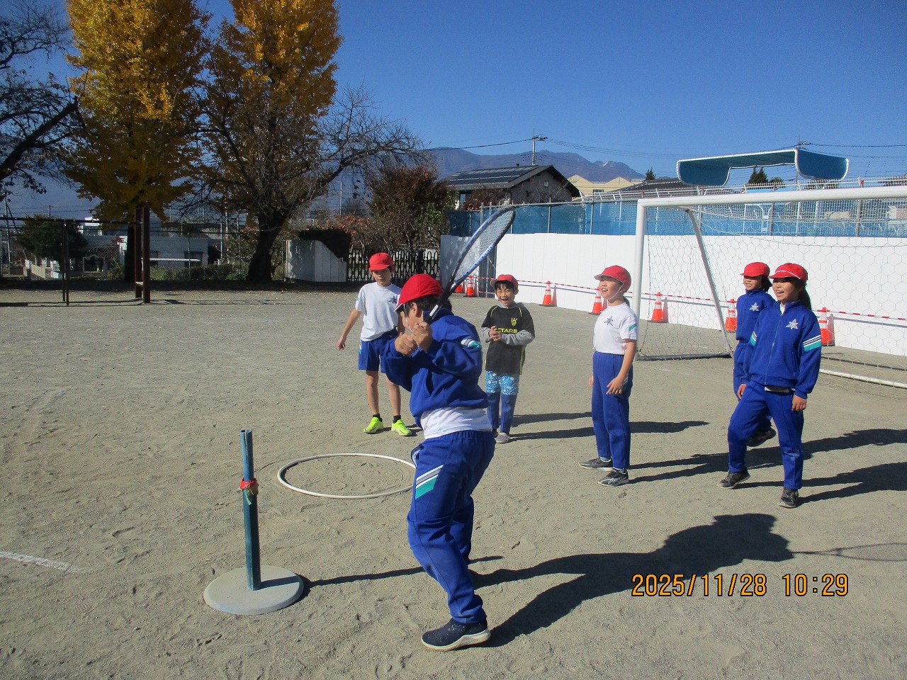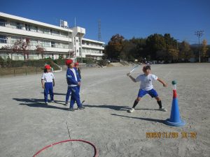 3年生は、体育の授業でティーボールとハードルのを校庭で行いました。ティーボールでは、チームで作戦を考えながらプレーしました。作戦がうまくいった時や、チームの仲間がいいプレイをしたときには拍手をするなど、友達と楽しく取り組むことができました。