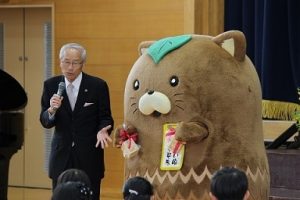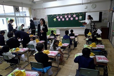 1年生は、『やはたいぬ』を驚きと笑顔で迎えていました。