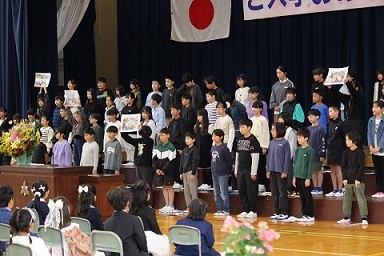また、6年生も式に参加していましたが、学校で様子や校歌を発表してくれました。