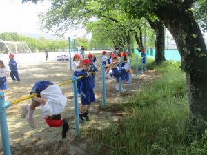 1年生 新しいこといっぱいの学校生活 2026年04月24日 トイレの使い方、くつの並べ方、朝の支度の仕方、えんぴつの持ち方から始まり、国語や算数の学習も始まりました。できることがどんどん増えていっています。 17日(金)には、楽しみにしていた給食が始まりました。友達と美味しく、楽しく食べている様子が見られました。 当番の仕事や苦手な食べものにも挑戦し、たくさん食べて成長していってほしいと思います。 22日(水)には、初めての遊具遊びを行いました。順番を守り、譲り合って楽しく遊ぶことができました。 これからの1年生の成長が楽しみです。 1年生