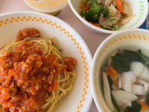 焼売は手作りにしかだせないふんわり食感。つるつるの少し甘めなチャプチェとのバランスも良かったです。1年生は焼売の見た目に見慣れないため、何人もこれはなんですか?と聞いてきたそうです。おいしいから食べてごらんといってくれる、先生方の丁寧な指導が有り難いです✨