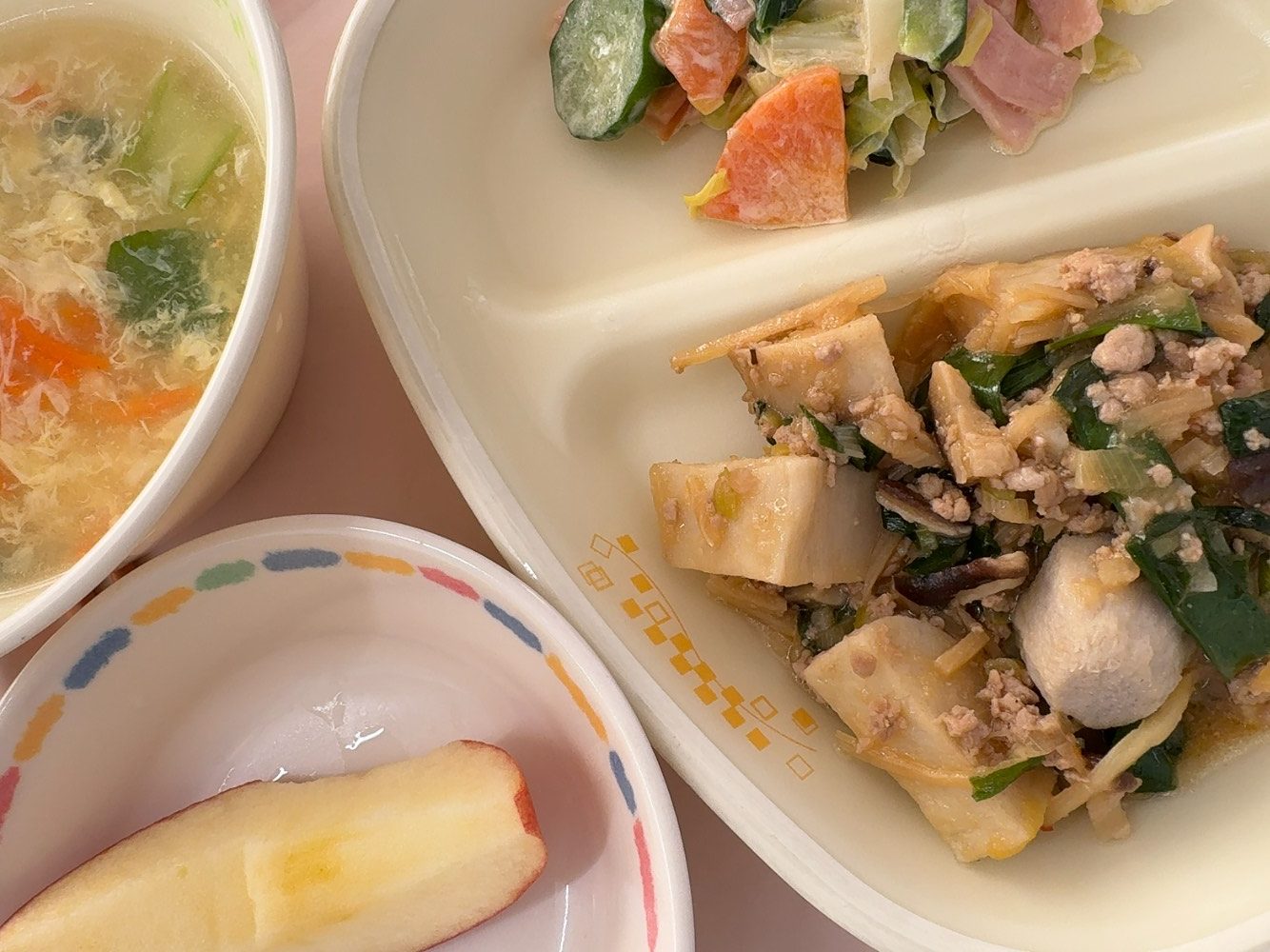 11月21日牛乳、麦ごはん、ナルトスープ、回鍋肉、切り干し大根サラダ。クラスにお邪魔すると、「お米があまい」と大喜び、また別の子も「給食が本当に本当においしい」とめちゃくちゃ笑顔で教えてくれました。みんなが幸せな気持ちなれる給食が提供出来ているようで嬉しいです。