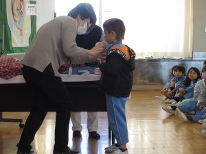 お母さんのおなかの中での成長や赤ちゃんが生まれるときの様子など分かりやすく話をしていただきました。「命は一度失うと二度と取り戻すことは出来ないこと」や「あなたはたった一つの大切な宝物」という言葉が子供達の心に特に残ったようです。