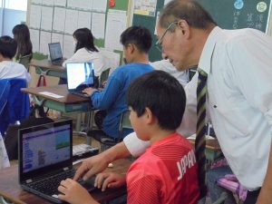 4年生の総合的な学習の時間において,甲斐市のサンテクノカレッジ様より講師をお招きし,3校時に1組,4校時に2組で,プログラミング教室が行われました。